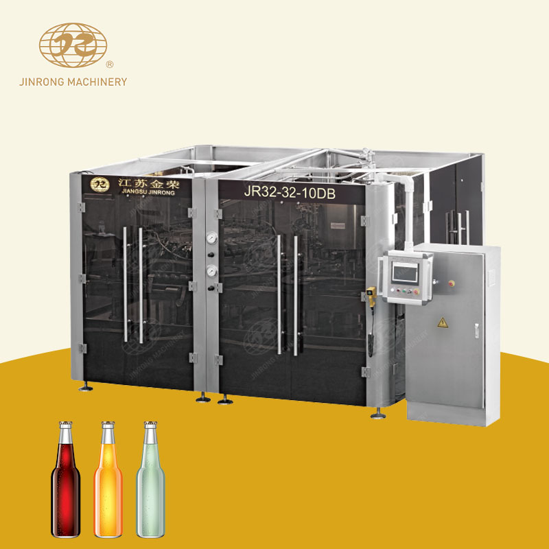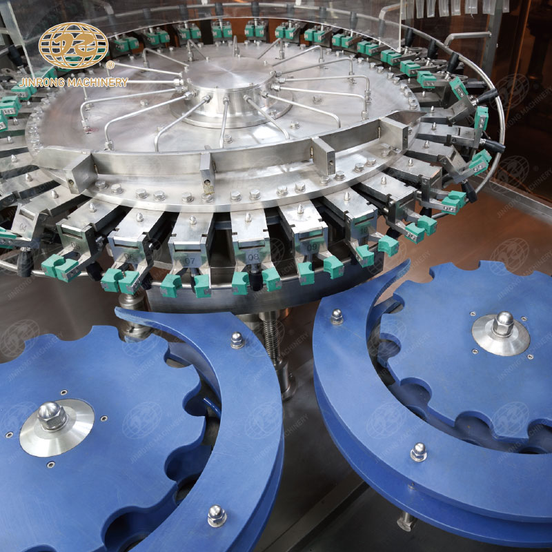 三合一含汽飲料灌裝機(jī)集清洗、灌裝、旋蓋于一體的灌裝設(shè)備,成套飲料生產(chǎn)線適合汽水、可樂(lè)、蘇打水、氣泡水等。玻璃瓶含汽飲料灌裝機(jī)組內(nèi)部一次完成洗瓶、灌裝、封蓋三道工序,瓶子磨損小、傳動(dòng)準(zhǔn)確平穩(wěn)、瓶型更換便捷。